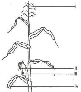 Use the diagram above to answer this question. The male inflorescence is labelled