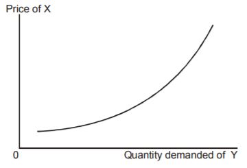 If the curve above shows the relationship between the price of commodity X and the quantity demanded of commodity Y then X and Y are