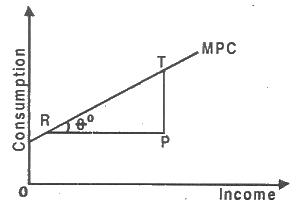 In the diagram, the marginal propensity to consume (MPC) is equal to