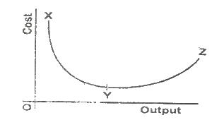 Consider the following diagram where XYZ represents the average curve of a firm. XY shows that as out put increases the average declines. However, this decline cannot continue indefinitely because