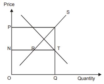 If in this demand-supply diagram, the quantity supplied is OQ, then