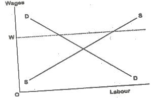 In the diagram above what happens when the minimum wage is fixed at OW?