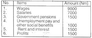 From the table calculate the national income
