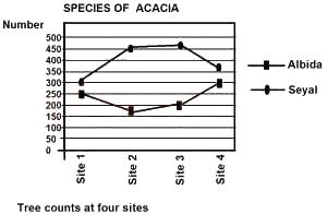 B) The number of seyal in site 1 is the same as that of albida in site 4