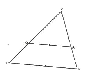In the diagram above, QR // TS, QR : TS = 2.3, Find the ratio of the area of triangle PQR to the area of the trapezium QRST.