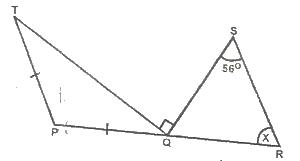In the figure, If PT is parallel to RS, PQ = PT, and angle SQT = 90, find x.