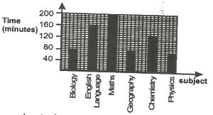 The bar chart above shows the allotment of time(in minutes) per week for selected subjects in a certain school. What is the total time allocated to the six subjects per week?