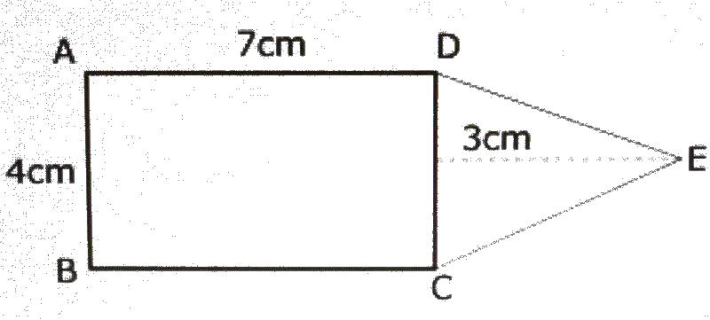 In the figure above, |CD| is the base of the triangle CDE. Find the area of the figure to the nearest whole number.