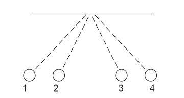 The diagram shows four positions of the bob of a simple pendulum. At which of these positions does the bob have maximum kinetic energy and minimum potential energy