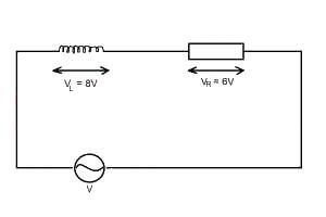 In the series a.c circuit shown above, the p.d across the inductor is 8Vr.m.s and that across the resistor is 6Vr.m.s. The effective voltage is