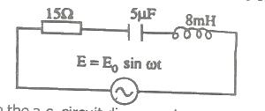 In the AC circuit diagram above, the resonance frequency is