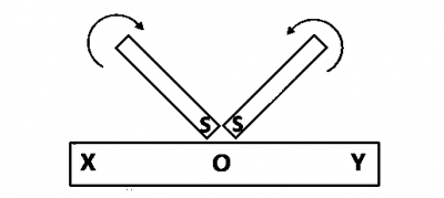 In the diagram above, if the south poles of two magnets stroke a steel bar, the polarities at X and Y will respectively be