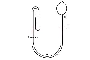 The diagram above shows a maximum and minimum thermometer divided into three portions P, Q and R. Which of the following is true about the respective content of P,Q and R