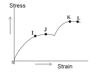 The diagram above represents the stress-strain graph of a loaded wire. Which of these statements is correct?
