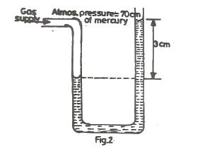 The water manometer above is measuring the pressure of gas supply. if the specific gravity of mercury is 13.6 and the atmospheric pressure is 70cm of mercury what is the total pressure of the gas supply in cm of water